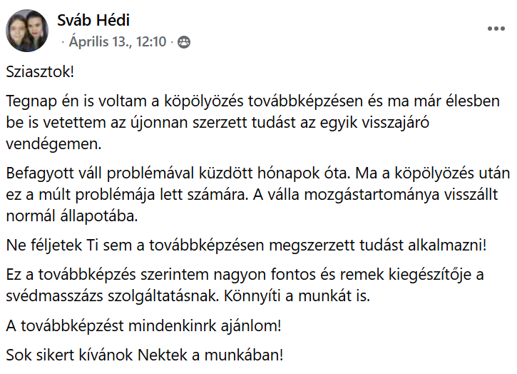Előképzettség előnyt jelent: Egészségügyi- Természetgyógyász-, Masszőr végzettség előny! Ha egyik végzettséged sincs, kérlek keress fel és megbeszéljük részt vehetsz-e a tanfolyamon